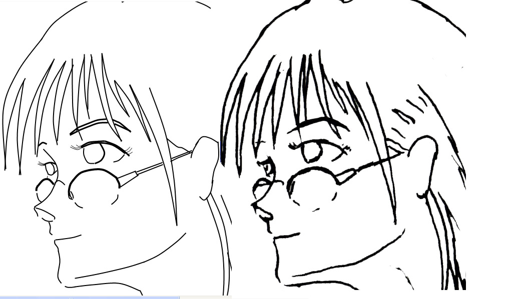 右がスキャン後の絵で左がベジェ曲線使って仕上げした絵。