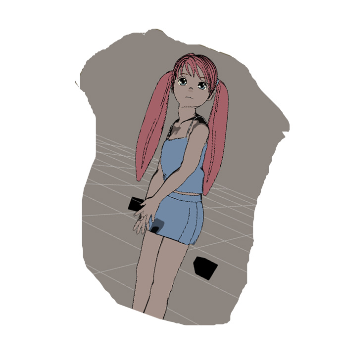 どうしても遠近法を使った際に身体の縮尺が上手くまとまらないな・・